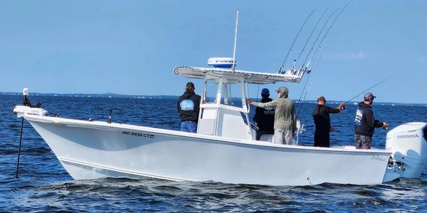 We exclusively run semi-custom boats from Judge Yachts that are specifically designed for fishing our area. Our original boat is a 27 Chesapeake cabin boat that offers plenty of weather protection for a more comfortable day on the water all year long with a large cockpit for fishing. We also recently added a 265 Center Console that offers an unobstructed deck for fishing the entire length of the vessel for our more hard-core anglers. Both boats are powered by a quiet and reliable Honda outboard and utilize a premium Furuno Marine Electronics package that includes Doppler radar, two color GPS Plotters, digital CHRIP fish finder, side scan, and a VHF radio. Either boat will ensure that our passengers will have a safe and enjoyable day on the water and have a private area to use a potty or change clothing.
